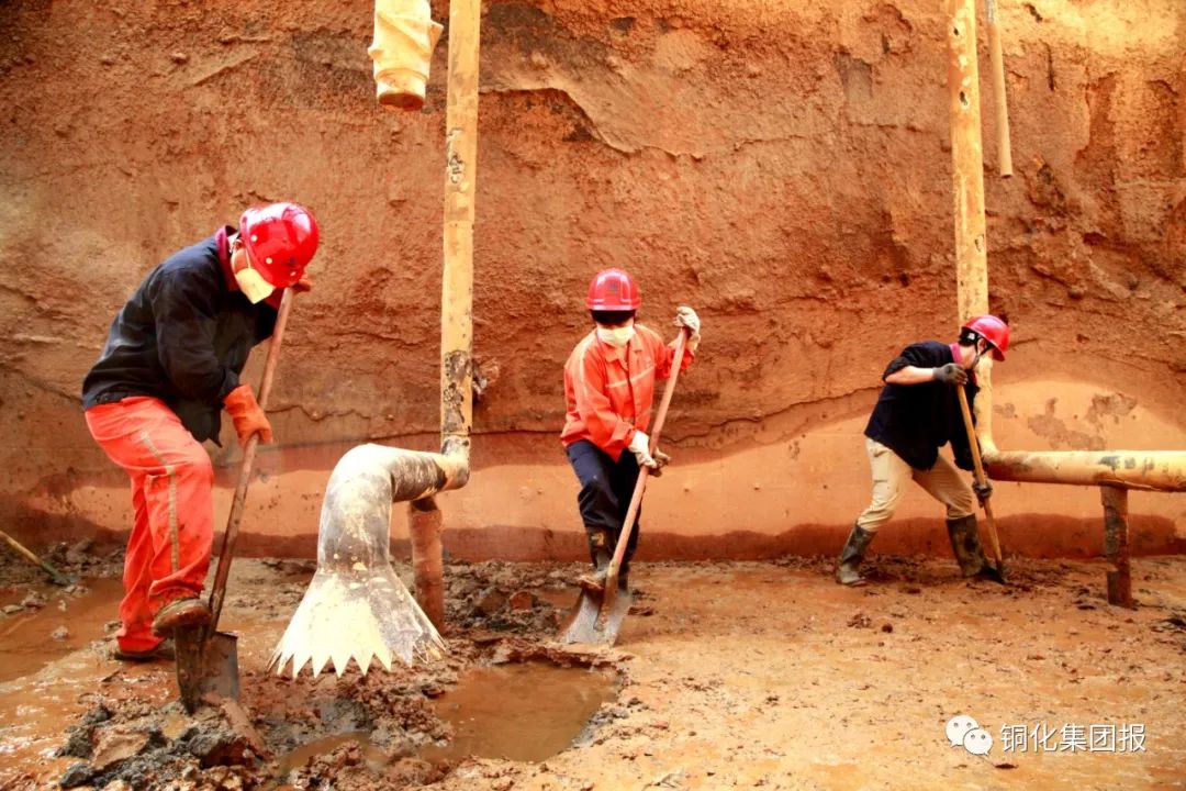 421,新橋礦業(yè)公司綜合保障分公司污水處理站內(nèi),30多名污水處理工,分成兩組,分別對老系列曝氣池和調(diào)節(jié)池污水收集溝進(jìn)行清理、疏通,共清理淤泥約3000立方米,疏通溝渠100多米。